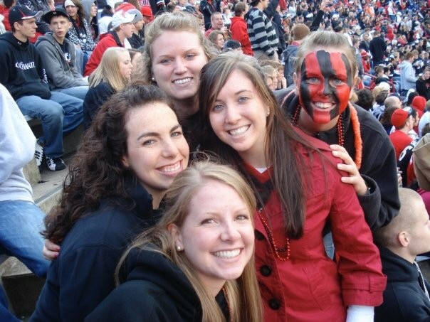 Submitted by Leah Zemany, '10, '14 // Keri Jenson, Leah Zemany (left), Ann Thulin, Bri Koessel and Jennifer Geiger at a UC football game in 2009